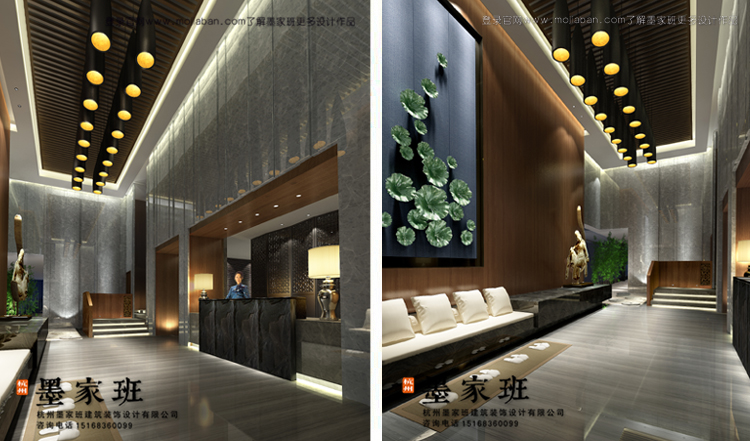 “若旭”宛如旭日初升,“悠庭”清清雅雅,平平静静,讲究一种心境。青青翠竹,小桥池塘,流露着淡淡的清荷雅致。清透的浅灰色石材配合柚木的自然纹理清新自然。设计从传统中式花格中提取元素在造创新组合特别为本项目设计了一款花格贯穿始终。