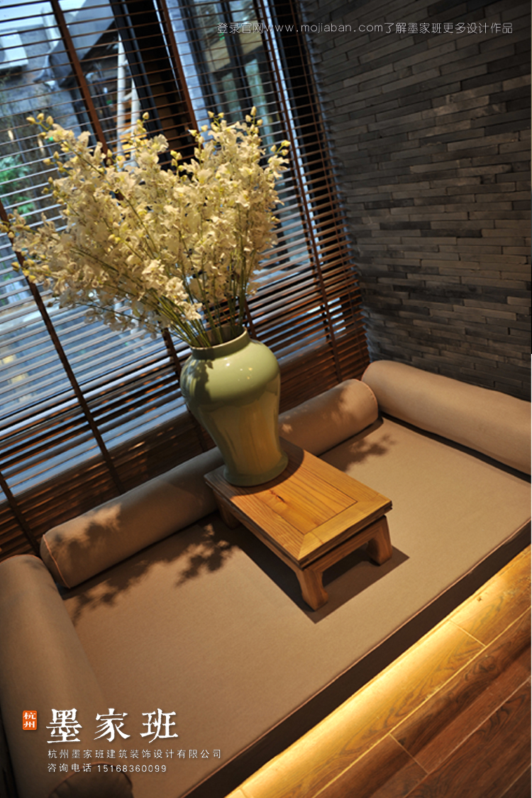 大幅的横向深色格栅打底,造价低,但效果平整,简洁大方,可以很好的起反衬作用。设计师着重设计了一组中式古建屋脊作为外观的重点突出,选材用的是深色素朴质感的原木,完全原始的传统古建搭建方式施工建造。通过体量、颜色、质感,来体现出设计师想把外观做出“含蓄但不失张扬"的设计意图。